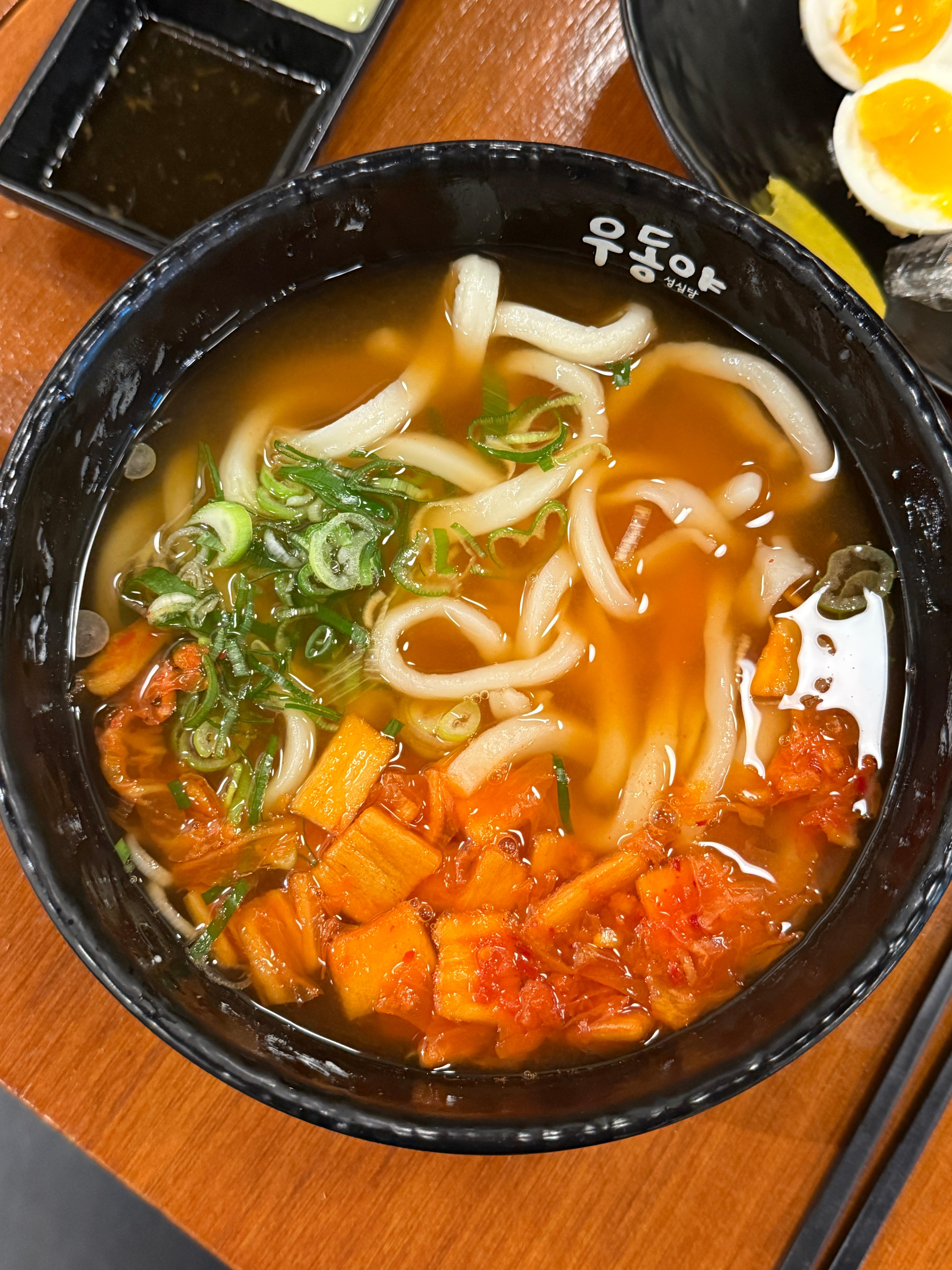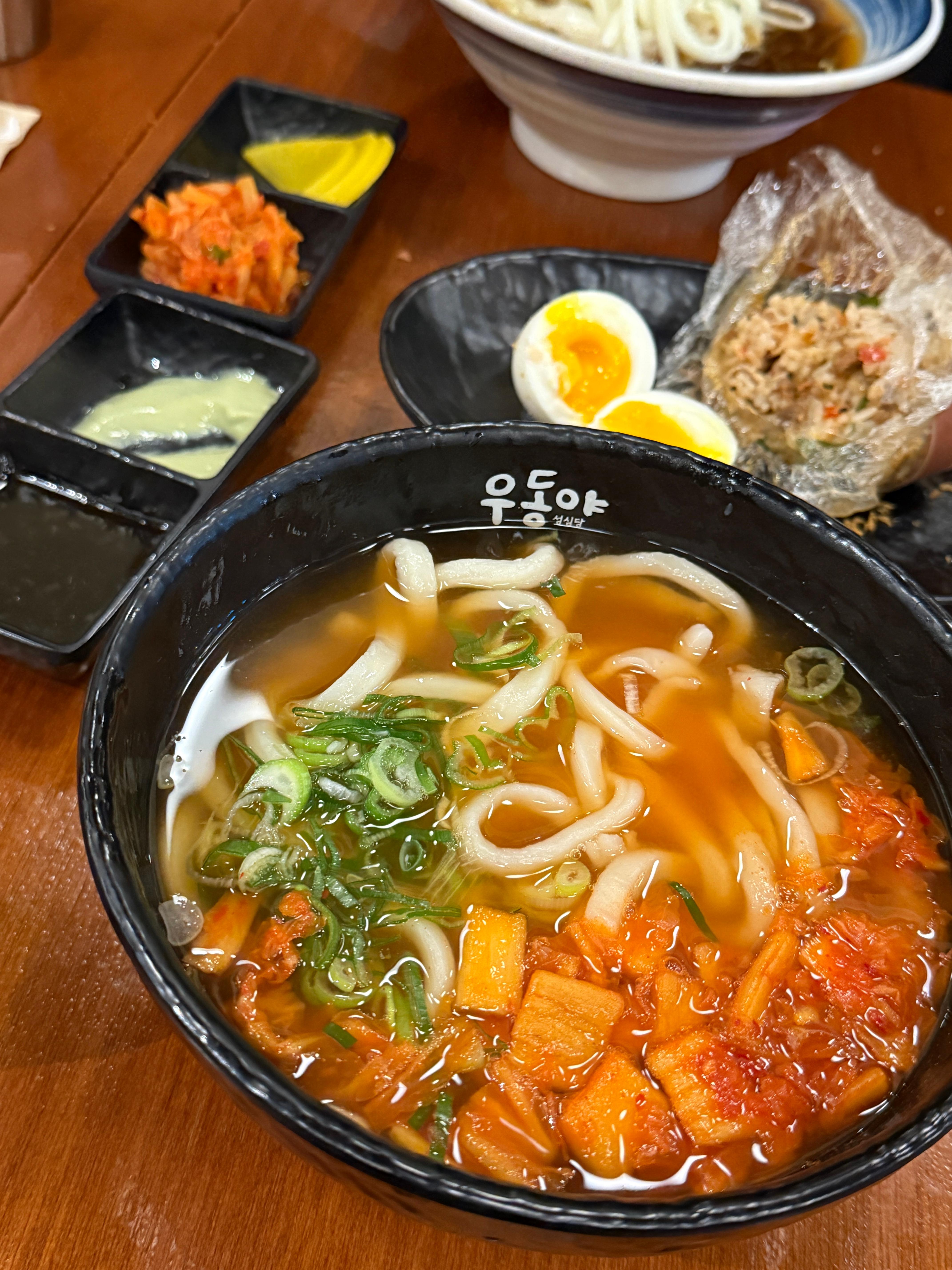 김치우동이라 단무지랑 먹으니 맛있더라고요